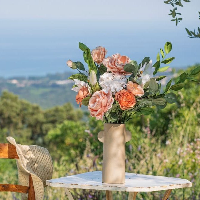Pero una composición floral no estaría completa sin la adición de plantas de papel Como Ruscus, Eucalyptus cinerea y Populus eucalyptus. El Ruscus, con sus largos tallos y hojas alargadas, ofrece un toque de vegetación que contrasta muy bien con flores coloridas. Eucalyptus cinerea, con sus hojas de plata, trae una nota de frescura y resplandor al todo. Finalmente, el populus eucalyptus, con sus hojas redondas y carnosas, agrega volumen y textura a la composición. Juntas, estas plantas crean un equilibrio visual y brindan profundidad a la composición floral. Las flores y las plantas de papel son una opción estética, duradera y personalizable.