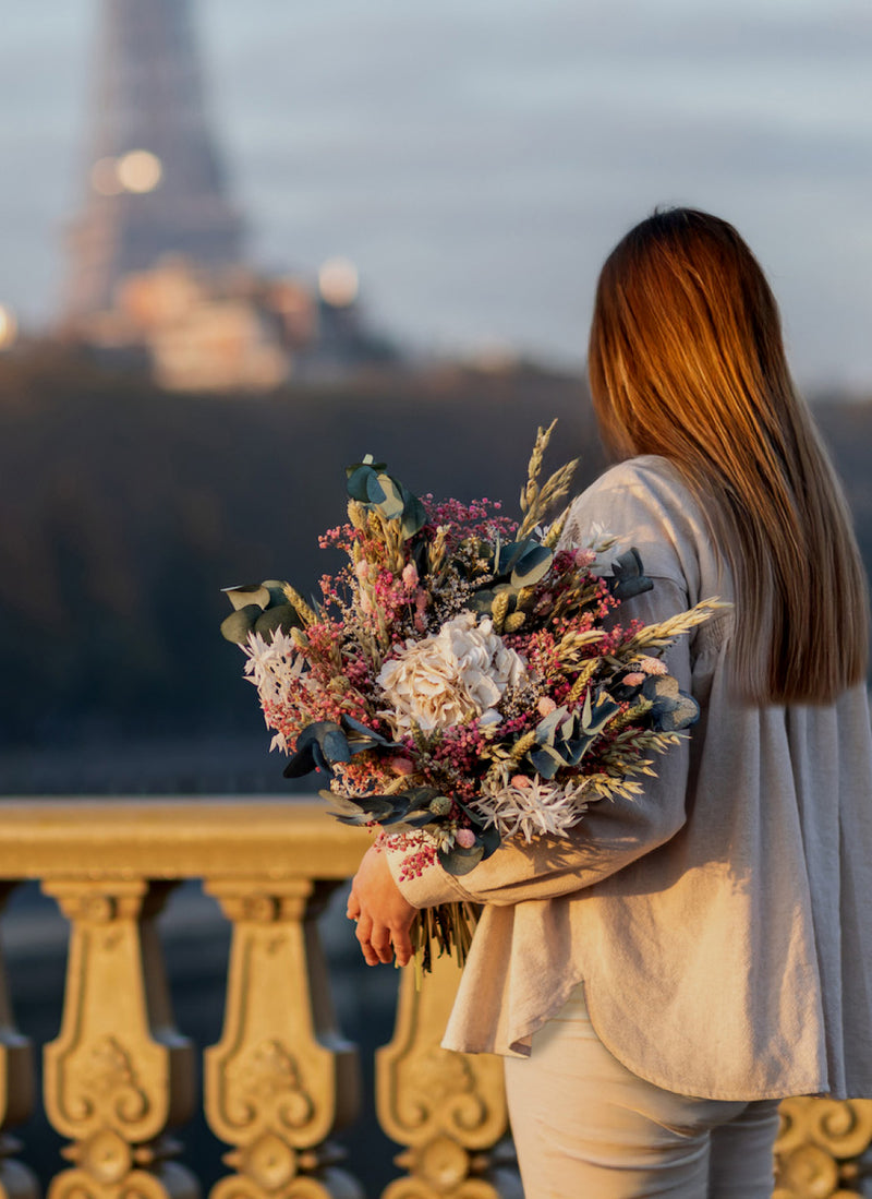 L’ENGAGEMENT : Chez Flowrette nous avons à coeur de mettre à l’honneur des fleurs cultivées en Europe. Nous travaillons uniquement les fleurs séchées et préservées qui par définition ne fanent pas et représentent la slow consommation.