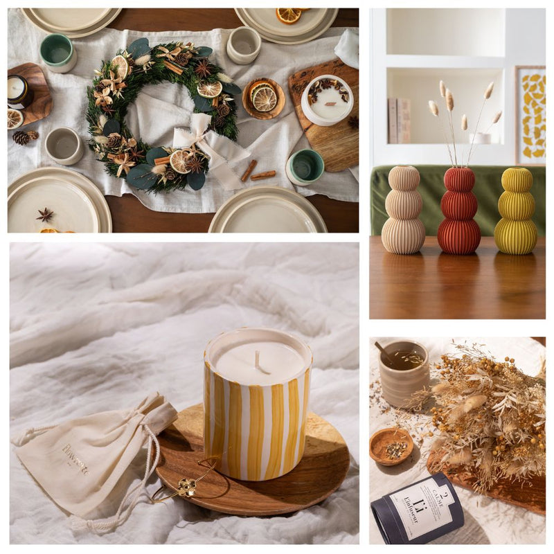 Encontrará jarrones, fundas de cojines, velas decorativas naturales con perfumes delicados, salas de almacenamiento, canastas, papelería ... y, por supuesto, una colección muy hermosa de platos con piezas de cerámica excepcionales en esmaltes muy hermosos. Si aún no los tiene, le recomendamos que también vea nuestras decoraciones navideñas.